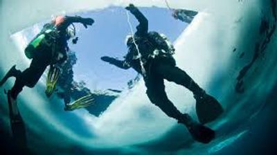 Sous la glace, vous apprendrez la maîtrise de la flottabilité, l'orientation sous-marine et à garder le contact avec les guides sous l’eau et en surface par l’intermédiaire des signes et de tractions sur des lignes.